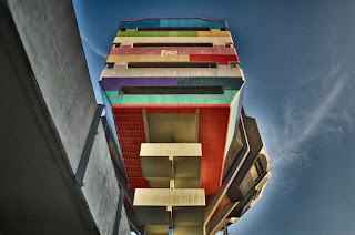 Dieser Sichtbetonbau gehört zum Sport- und Kongresszentrum des Sportforums Berlin in Hohenschönhausen und wurde der Architektur nach Ende der Siebziger/Anfang der Achtziger Jahre in der DDR für den SC Dynamo Berlin gebaut. Während die restlichen Gebäude und Anlagen weiterhin in Betrieb sind, wird das Kongresszentrum wohl seit einigen Jahren nicht mehr vom Sportforum genutzt. Von 2007 bis 2008 war es Kulisse für die kaum bekannte Sat. 1-Serie „GSG9 - Ihr Einsatz ist ihr Leben“ , was die merkwürdige Aufschrift „Isolierstation“ an der Tür zur Großküche erklärt, außerdem lassen sich noch Veranstaltungsplakate und Kongressunterlagen aus den Jahren bis 2007 finden. Auf der Seite „modernruins.de“ kann man auf den Aufnahmen erkennen, wie es dort noch vor einigen Jahren ausgesehen hat, inzwischen ist auch hier viel zerstört oder gestohlen worden.